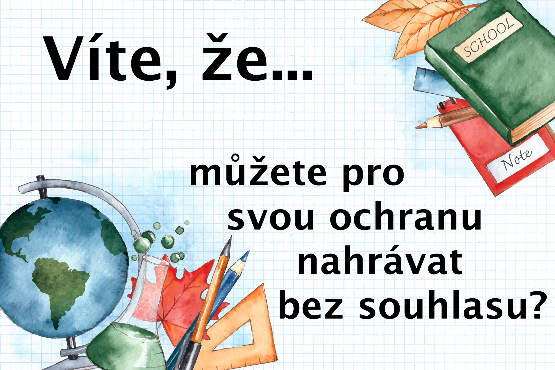 👉 Nahrávka může být použita pouze pro vlastní ochranu – tedy jako důkaz pro ředitele školy, Českou školní inspekci, policii nebo soud.