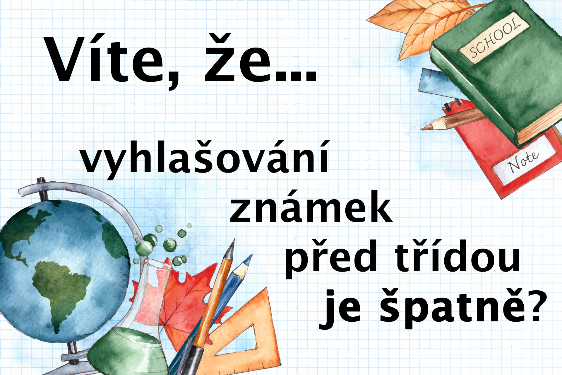 Navíc, vyhlašování známek před ostatními zasahuje do soukromí žáků a jejich osobnostních práv - známku lze totiž považovat za osobní údaj, který je nutné chránit. A ochrana osobnosti dítěte je rozhodně důležitější než jakýkoliv domnělý pedagogický důvod učitele vyhlašovat známky nahlas před ostatními. Děti ve škole mají právo na soukromí a na přívětivé prostředí, ve kterém se mohou učit beze strachu z ponížení a porovnávání.